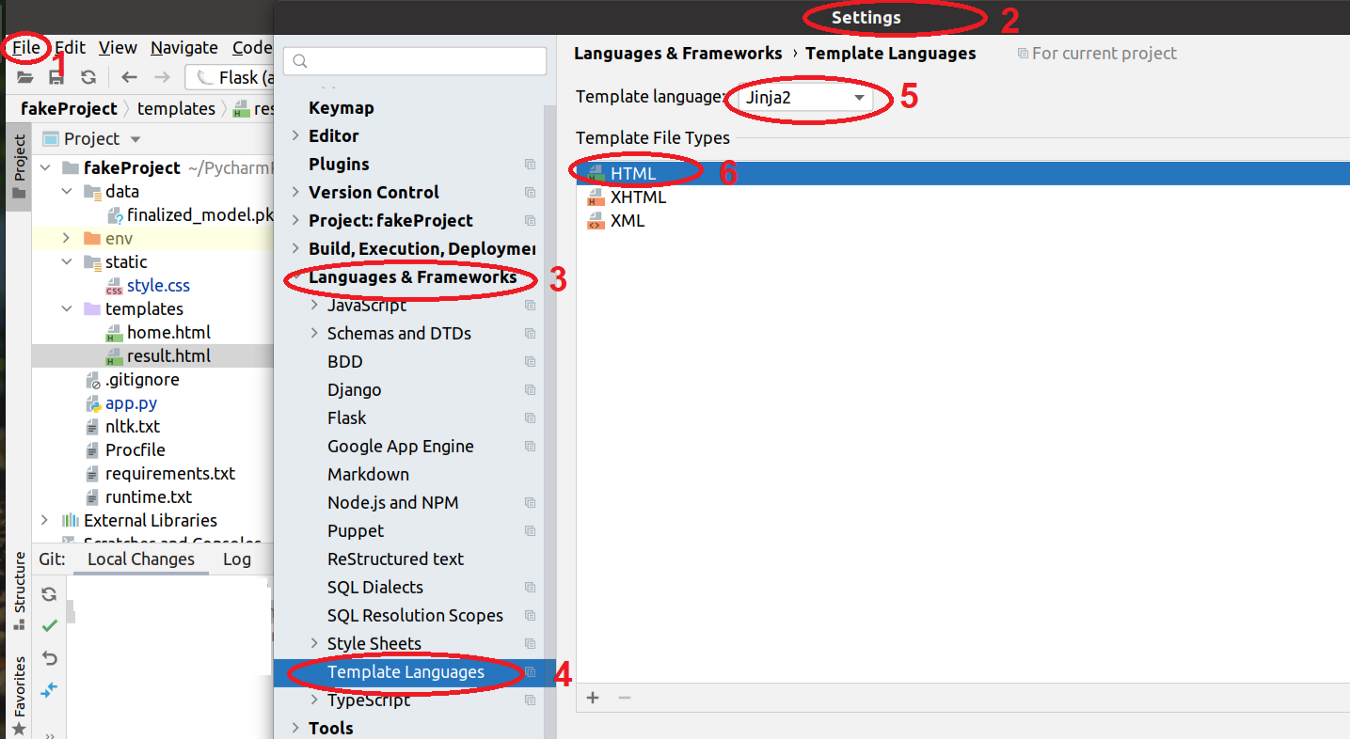 Important: mark folders /data and /static as Resources. In PyCharm for Linux, you can do it in File–>Settings–>Project Structure. The /templates folder mark as Templates. Nice to exclude some folders from Heroku upload and reduce application size(virtual environment folder). Don’t forget to add a .gitignorefile in your project: